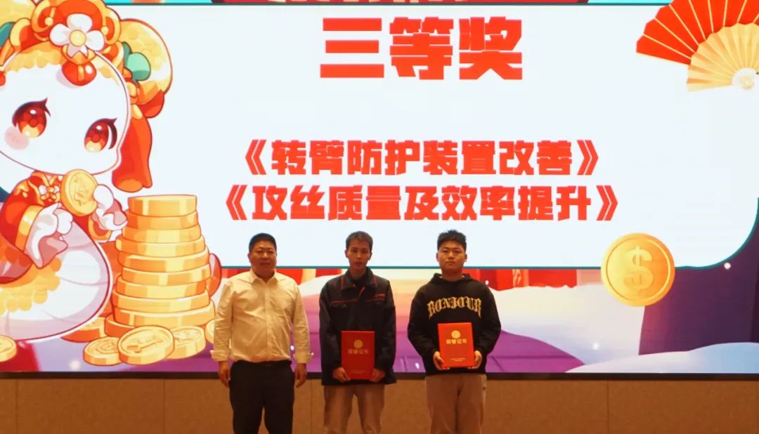 通過與會成員全員進行投票評選,《輪輞生產線外觀及自動化改善》、《凱傲項目質量改善提升》榮獲一等獎,《橋殼焊接改善》、《快速檢測裝置的設計制作》榮獲二等獎,《攻絲質量及效率提升》、《轉臂防護裝置改善》榮獲三等獎。